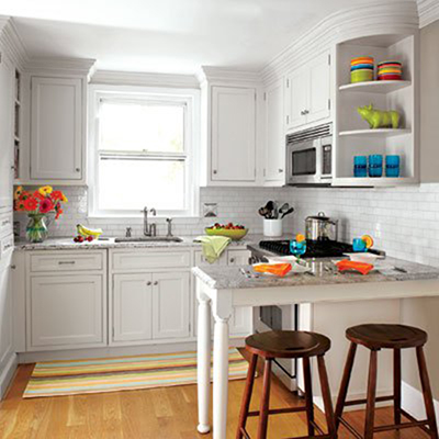 Bạn nên ưu tiên sử dụng tông sáng giúp bếp thanh lịch, hài hòa với màu kim loại của đồ điện tử.
